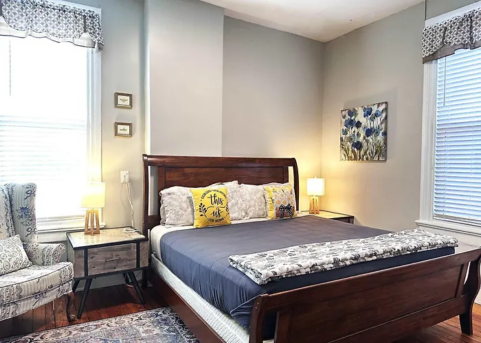 King Bed Central Location Museums Free Parking G4 Richmond está situado a 5 minutos a pie del Memorial a Jefferson Davis y tiene vistas a la ciudad. Este apartamento se encuentra a alrededor de 5 minutos andando de The Branch Museum of Architecture and Design y a poca distancia andando de Branch House.